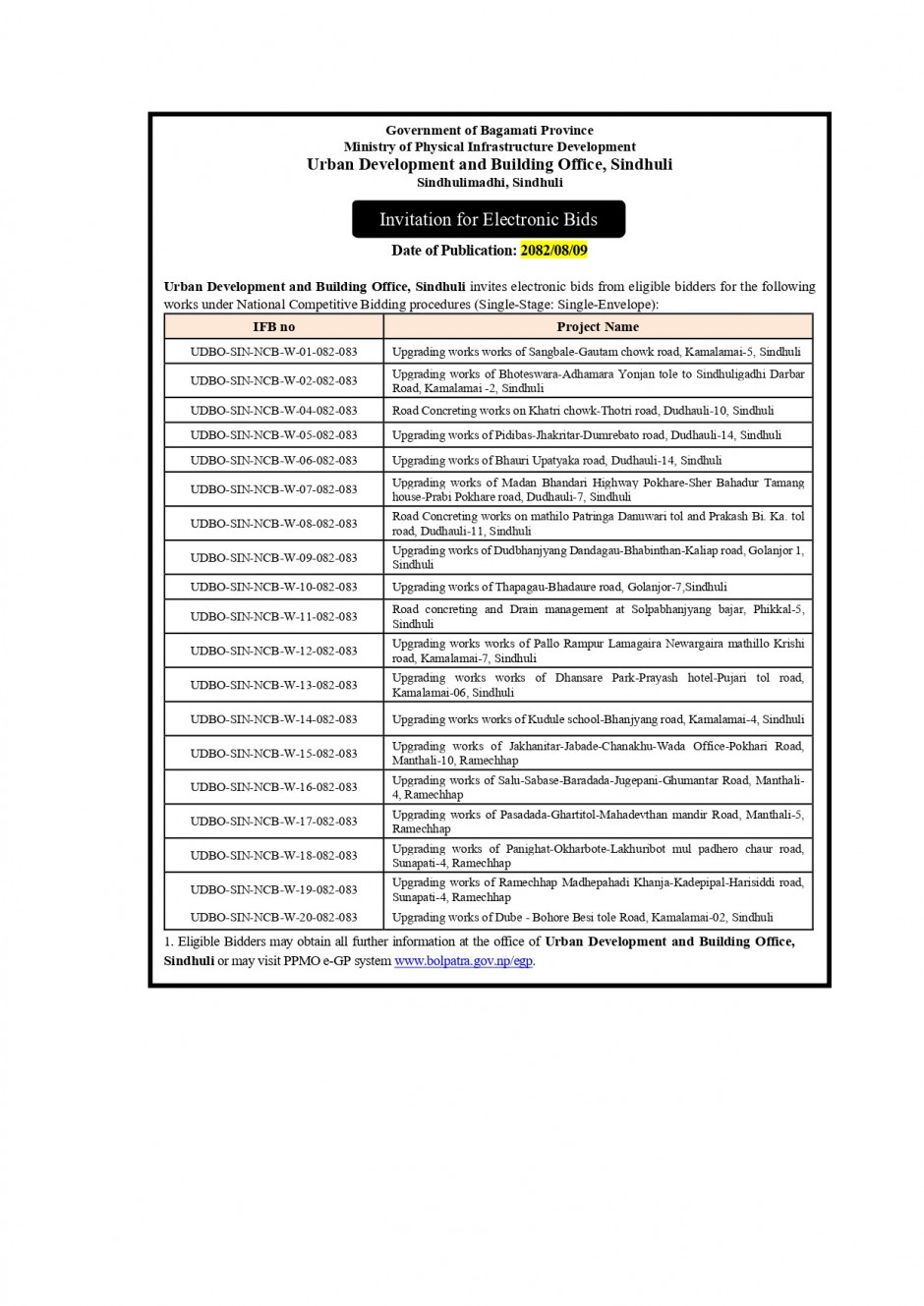 बोलपत्र आह्वान सम्बन्धी सूचना